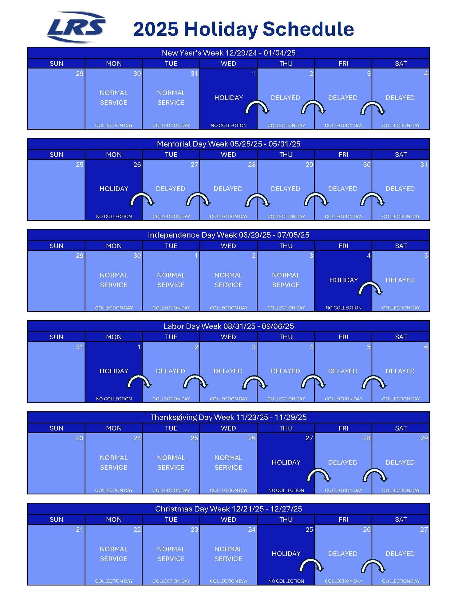 2025 Holiday Trash Pickup Schedule