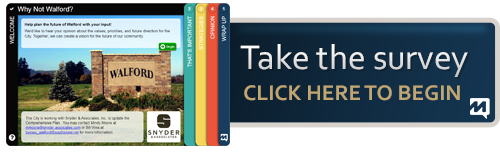 City's Plan - Walford Public Survey Please Take The Walford Public SurveyThe City of Walford is updating their Comprehensive Plan. Let your voice be heard by taking this quick survey to help us plan for the future! Together, we can create a vision for our community. City's Plan, City UpdateTyce HoskinsSeptember 23, 2019 Facebook0 Twitter 0 Likes