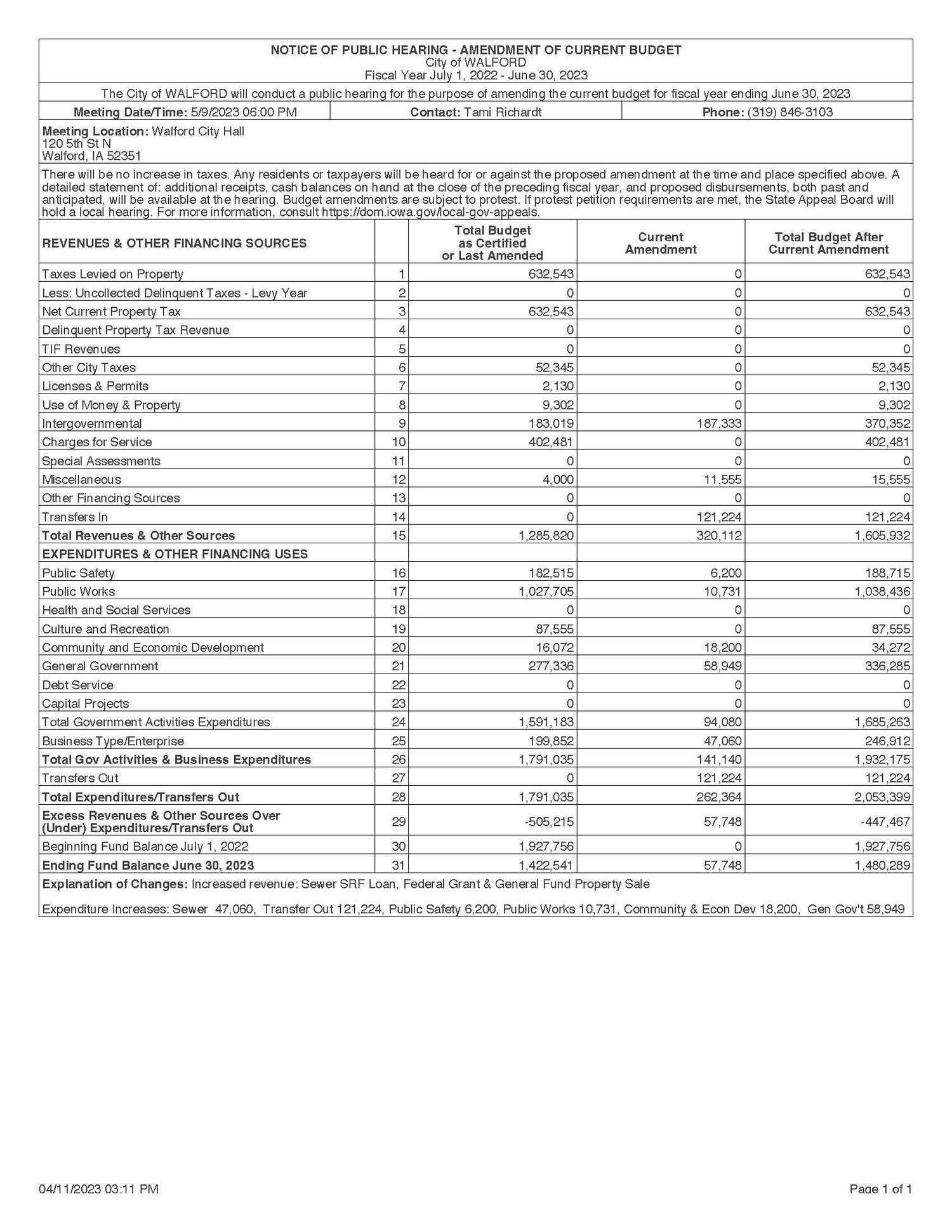 NOTICE OF PUBLIC HEARING - AMENDMENT OF CURRENT BUDGET DOWNLOAD NoticeTyce HoskinsApril 26, 2023 Facebook0 Twitter 0 Likes