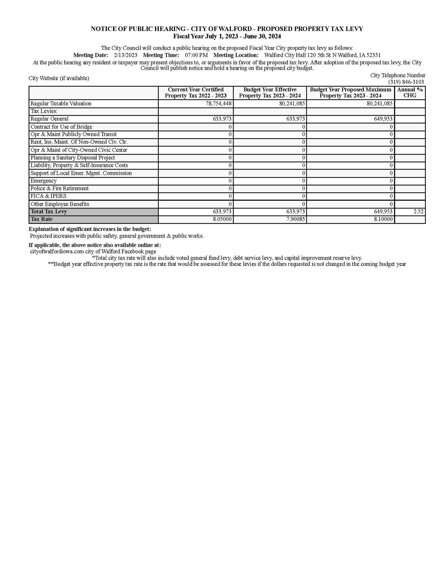 NOTICE OF PUBLIC HEARING - PROPOSED PROPERTY TAX LEVY Fiscal Year July 1, 2023 - June 30, 2024