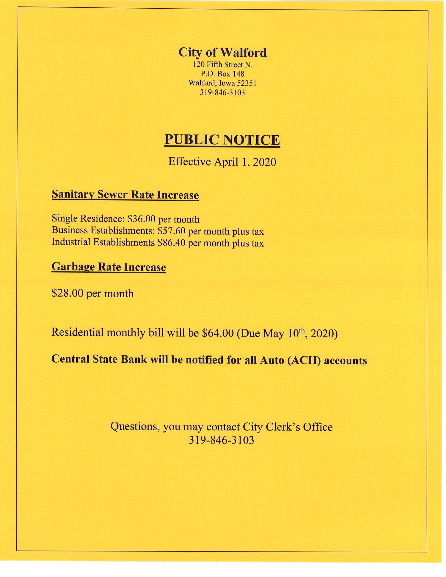 Public Notice - Rate Increases Effective April 1st, 2020 Questions? City UpdateTyce HoskinsMarch 6, 2020 Facebook0 Twitter Pinterest0 0 Likes