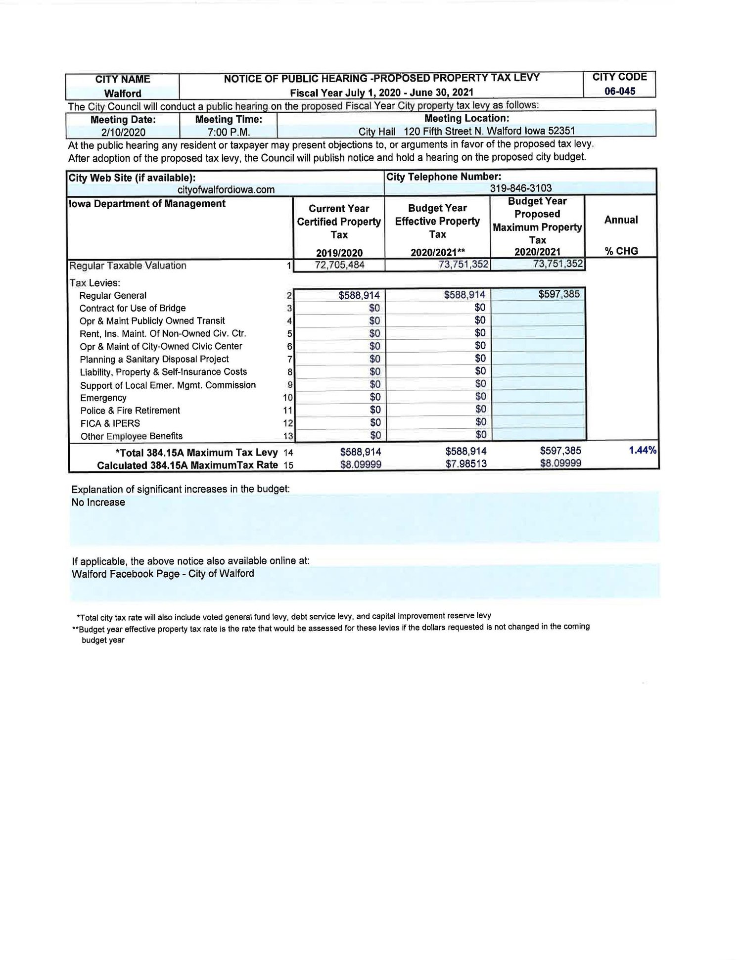 Walford Public Hearing Notice for Levy Download PDF Notice, Public Hearing Tax LevyTyce HoskinsJanuary 23, 2020 Facebook0 Twitter Pinterest0 0 Likes